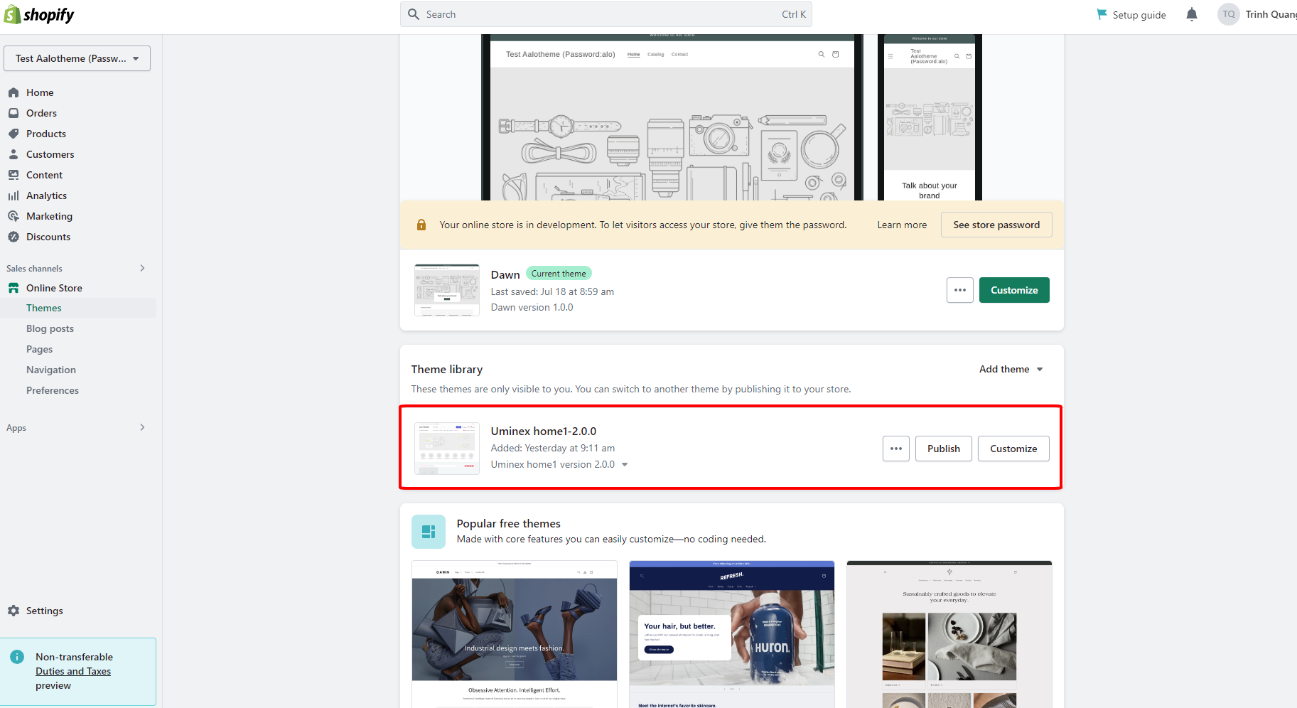 # Upload theme