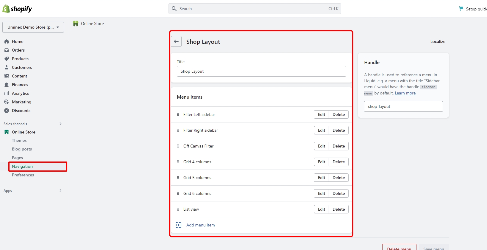 From Navigation bar, you can create dropdown menu, megamenu include: Home, Shop, Blog, Page