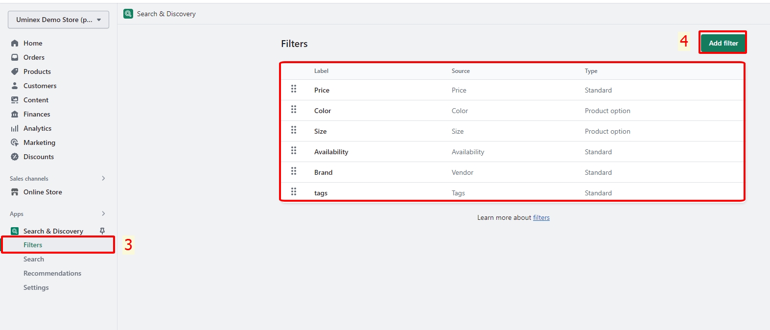Go to Apps and install the "Search & Discovery" app.