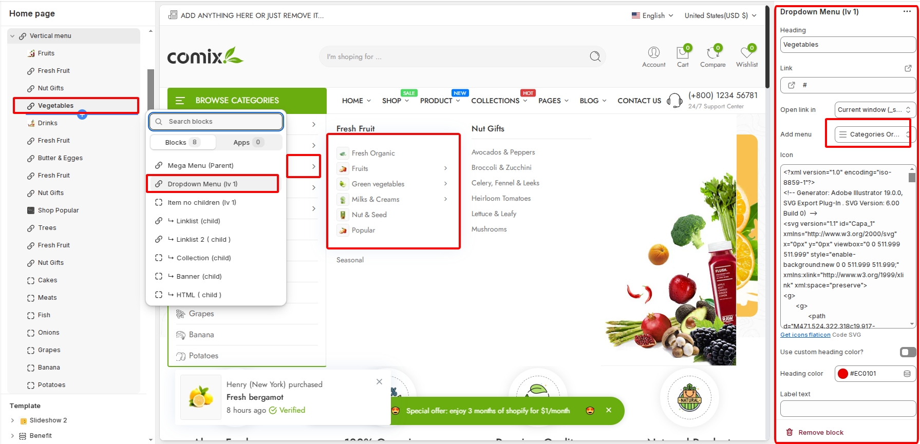 Add menu and column menu con for vertical menu