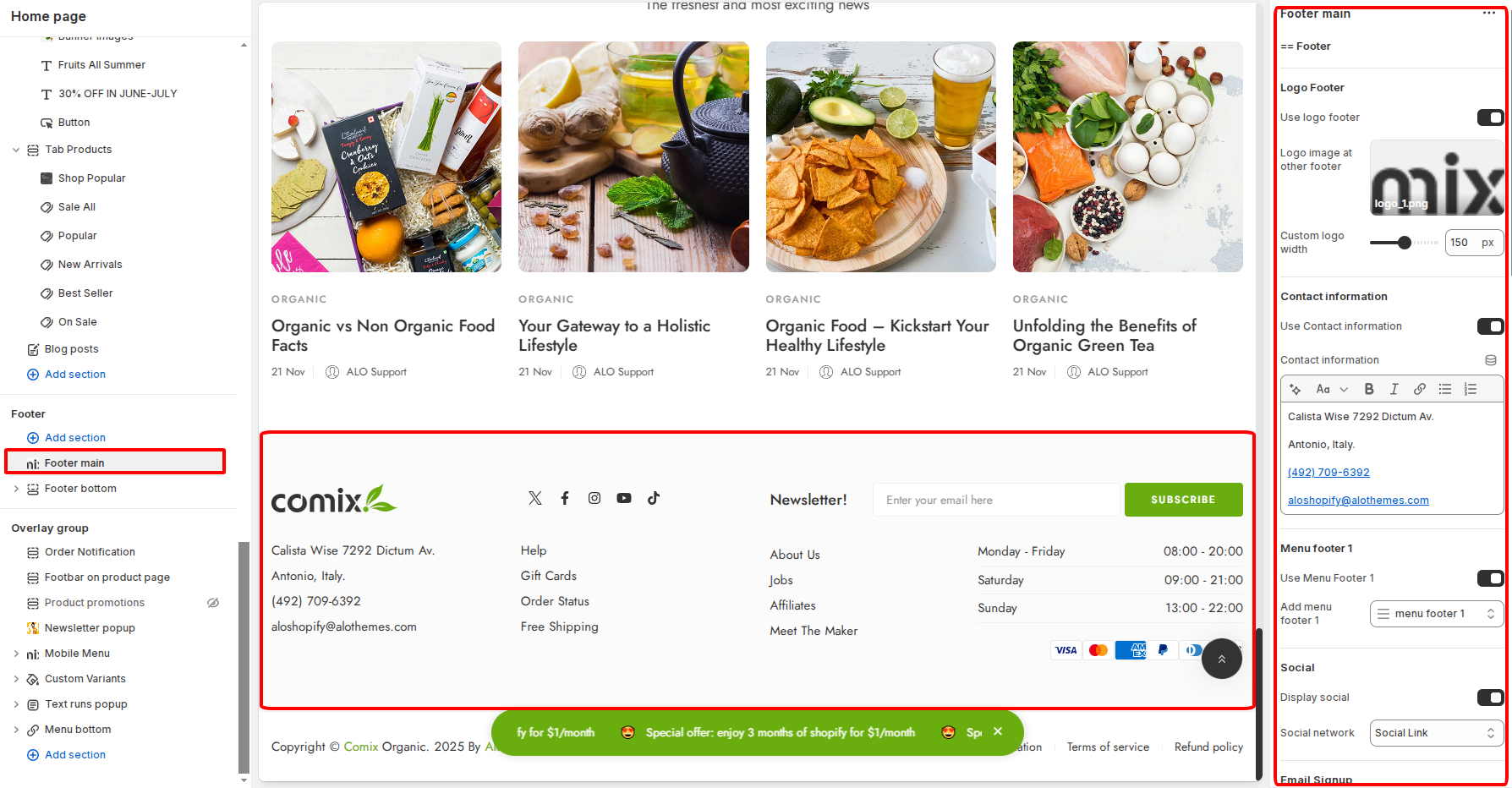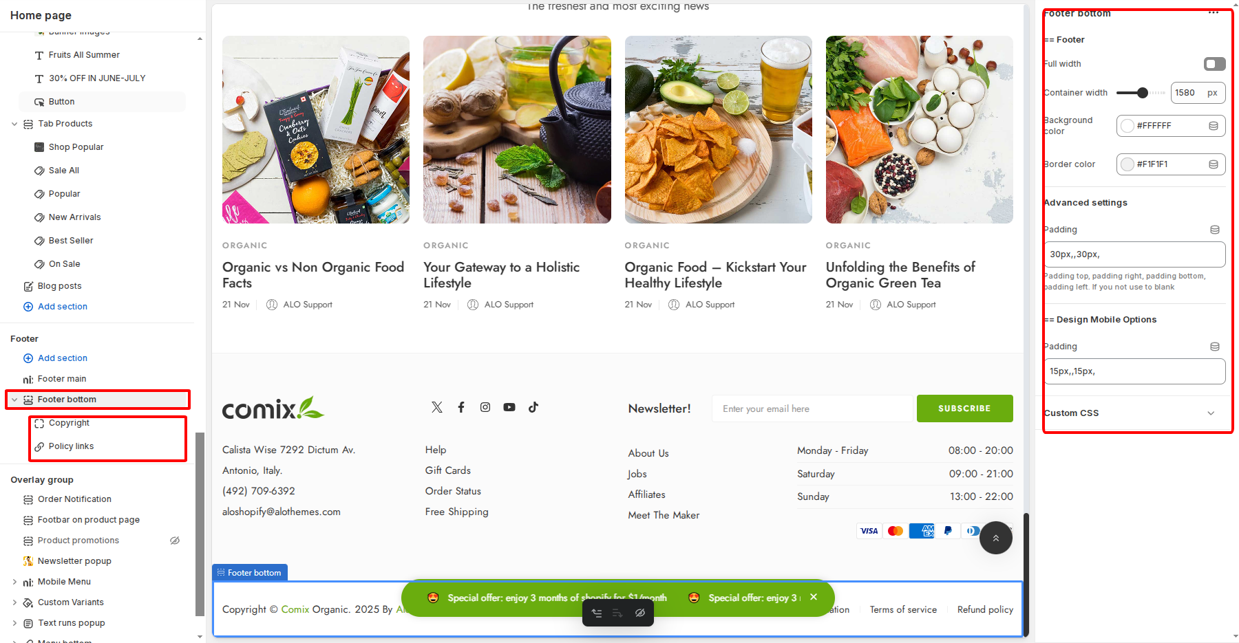 You can go there to edit your footer