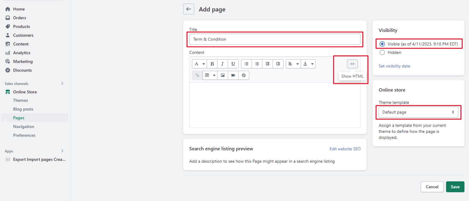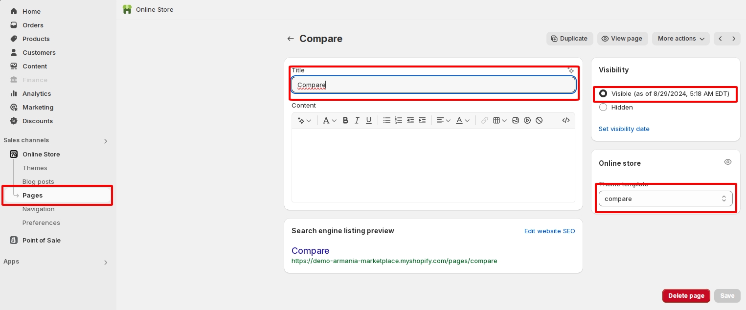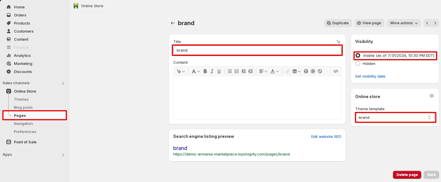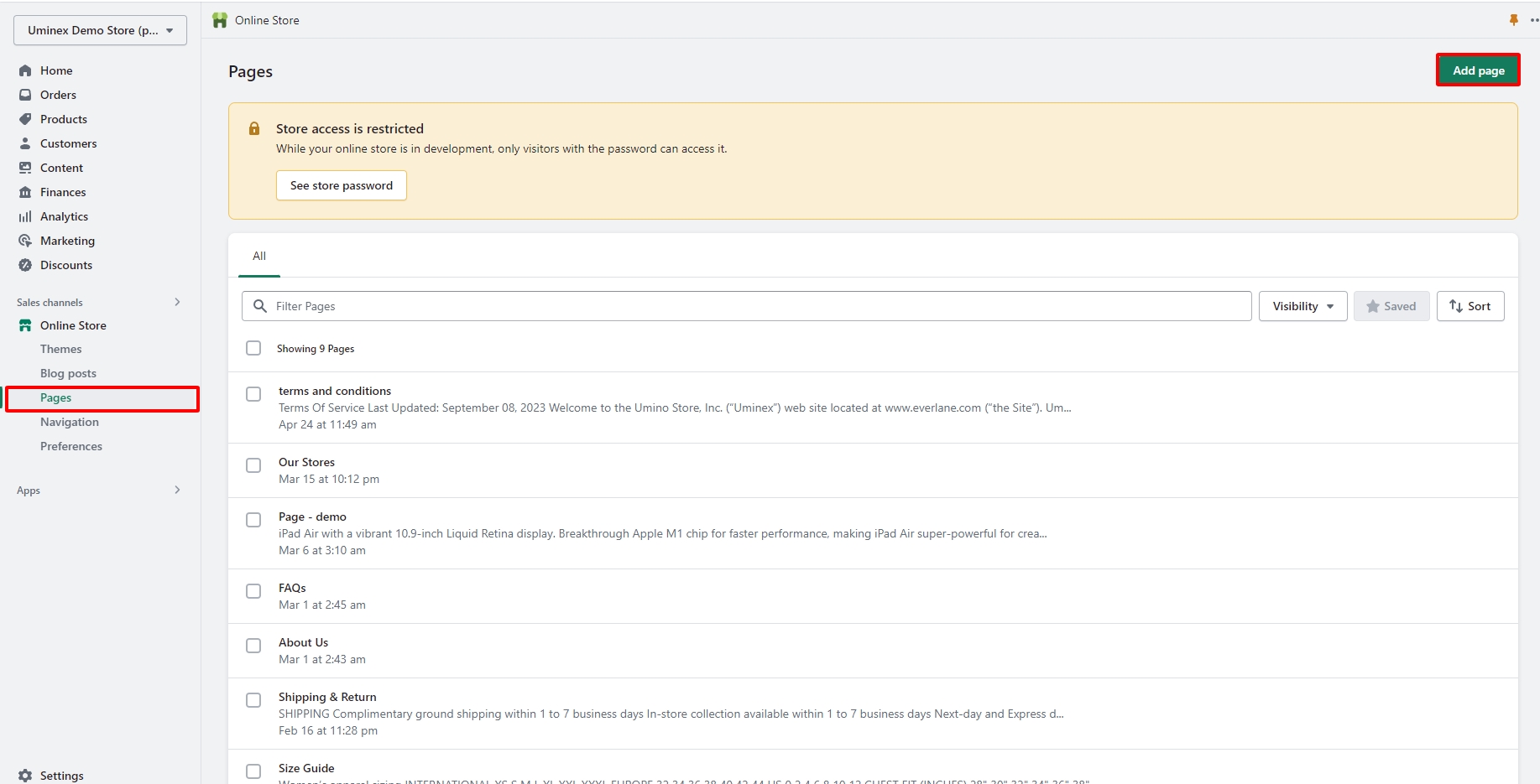 Step 1: Login to your Shopify store, go to Online Store > Pages