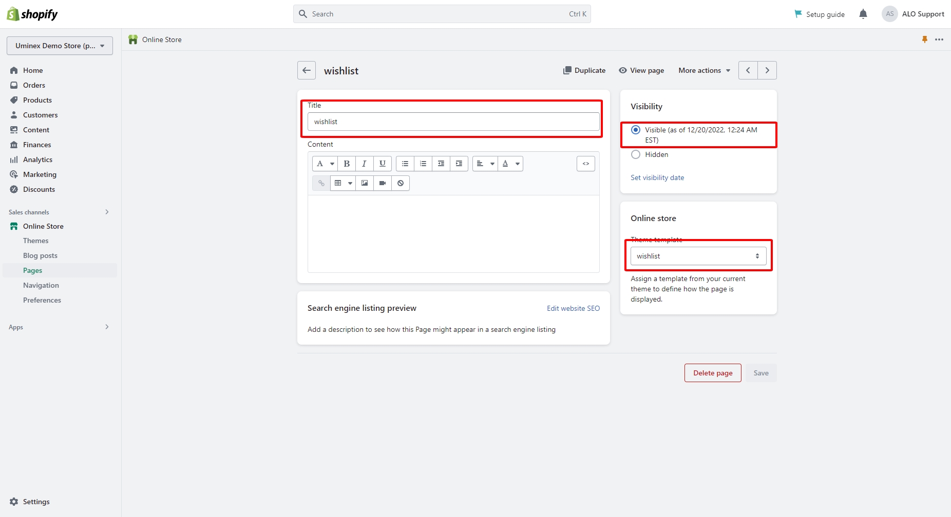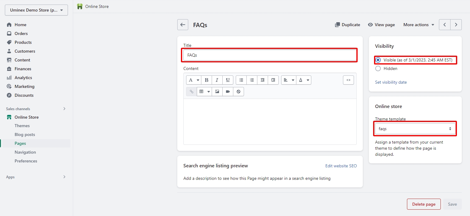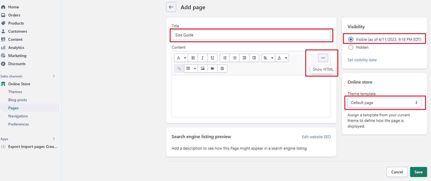 Step 1: Login to your Shopify store, go to Online Store > Pages