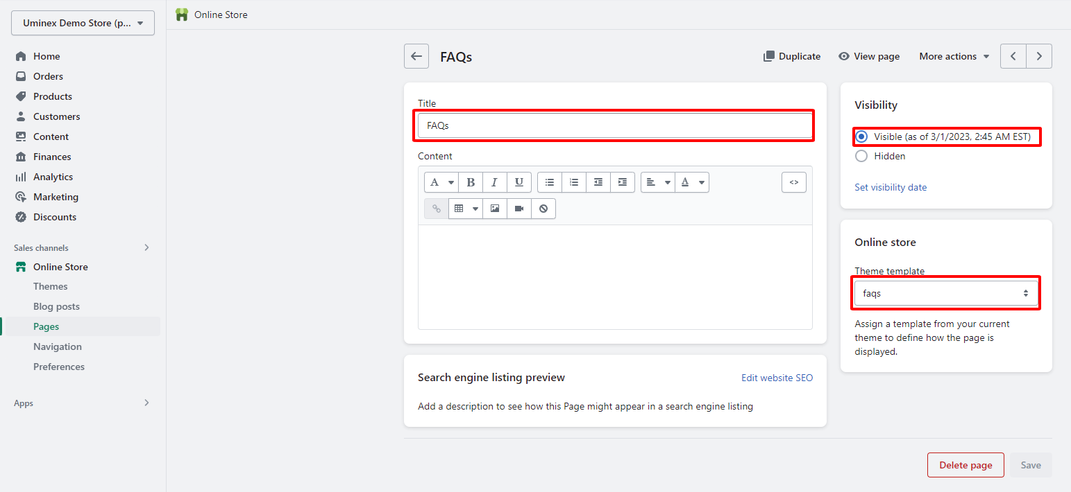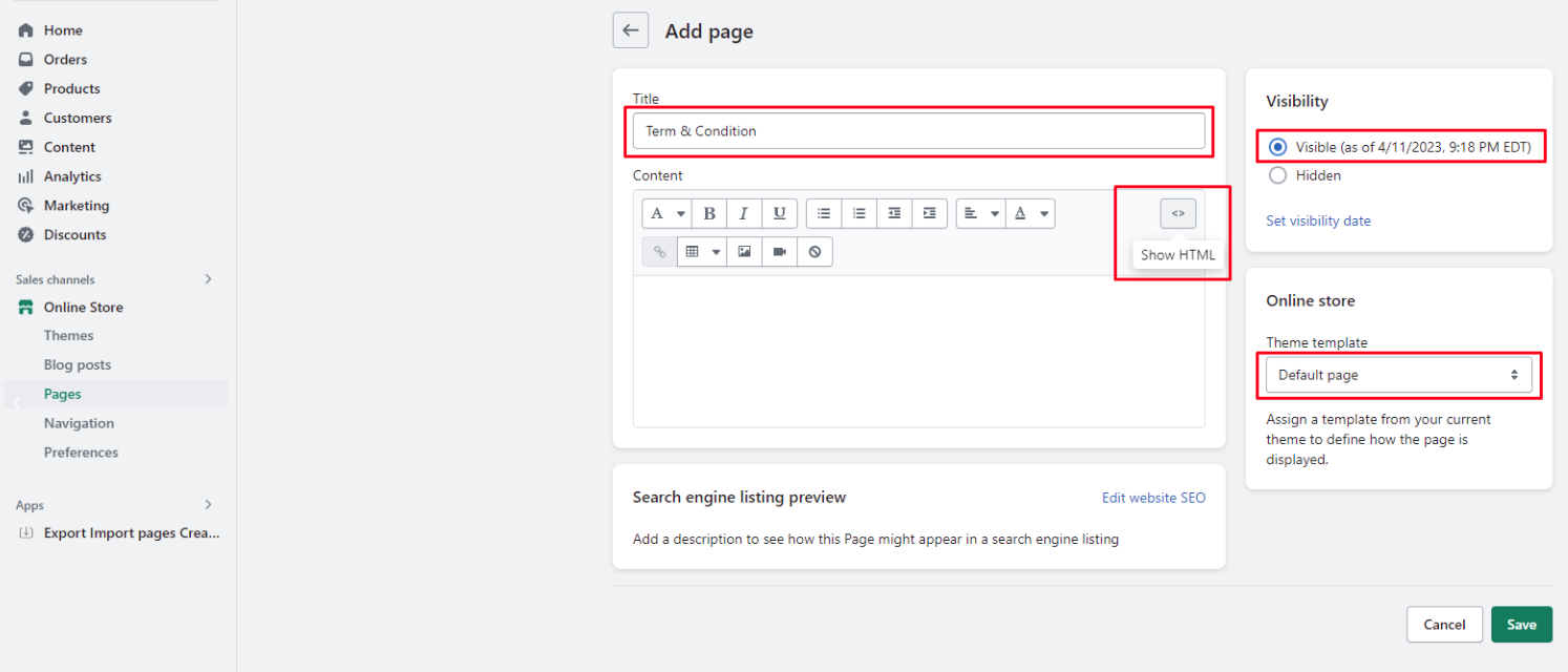 Step 1: Login to your Shopify store, go to Online Store > Pages