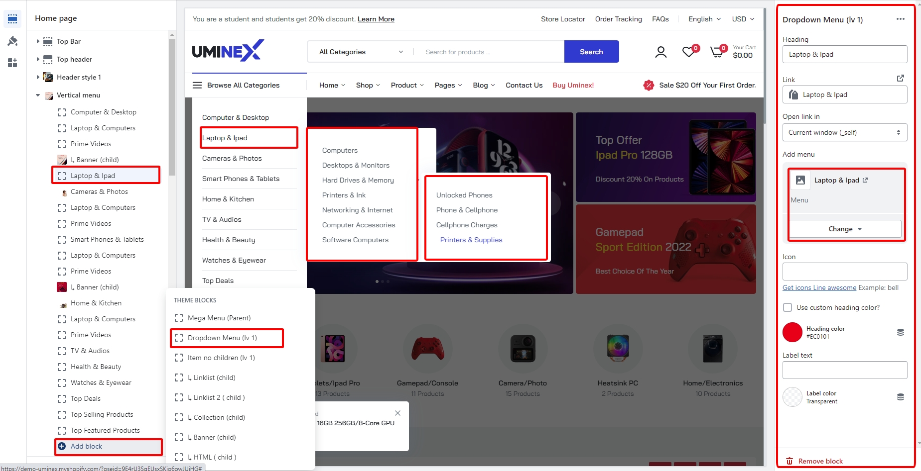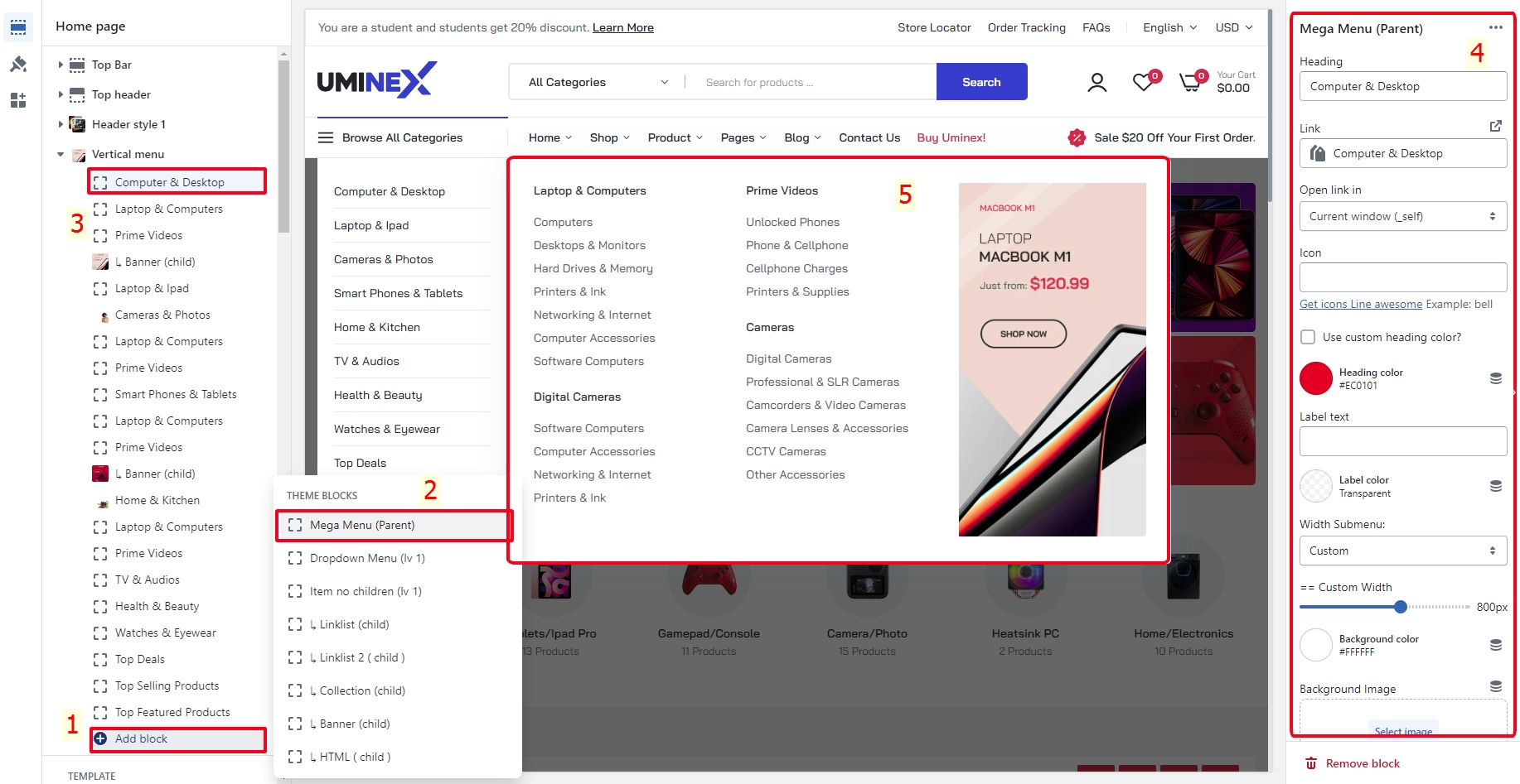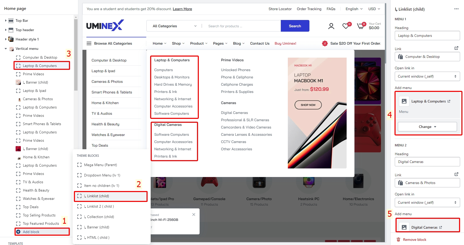 Setting Vertical menus