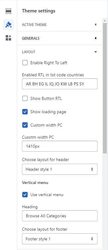 * In the theme editor (**Customize**), click **Theme settings**