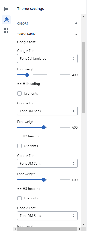 It shows current font family, font size, font weight, H1, H2, H3, H4, H5, H6 font family and more