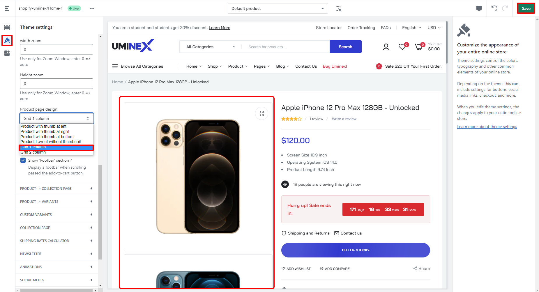 1. In the theme editor (**Customize**), click **Theme settings**