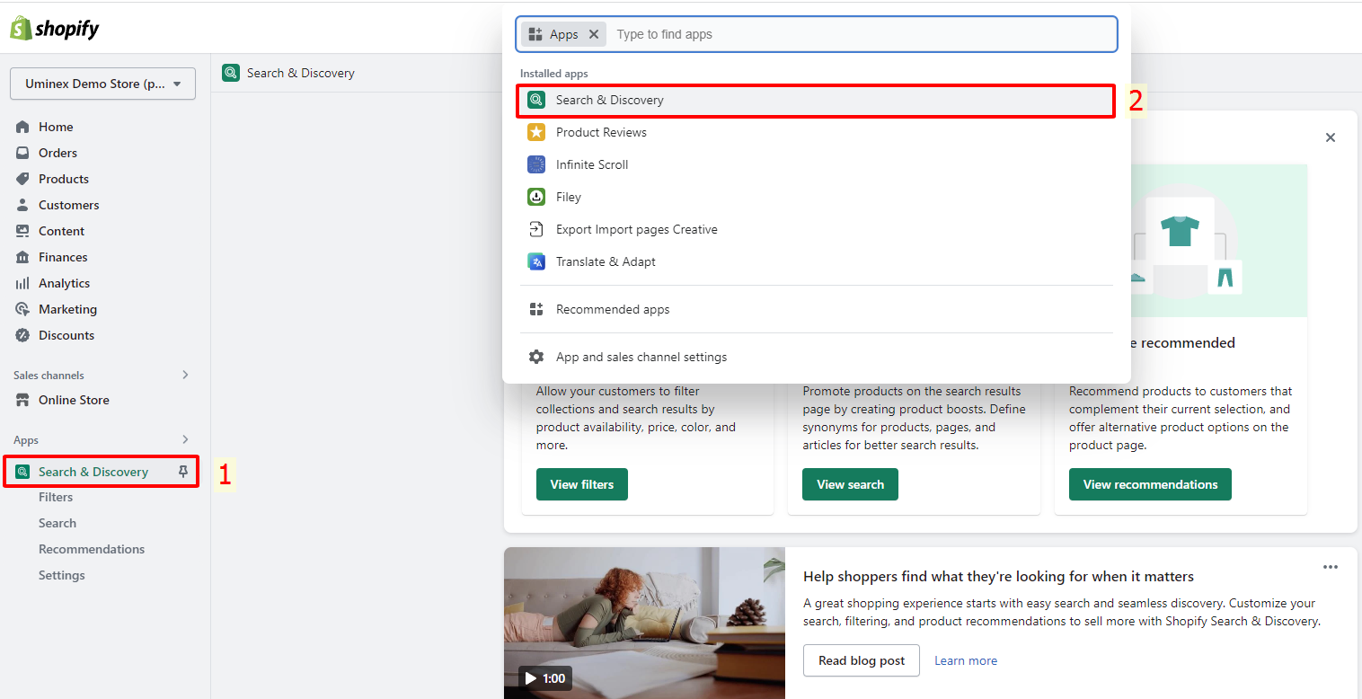 1. Go to Apps and install the "Search & Discovery" app.