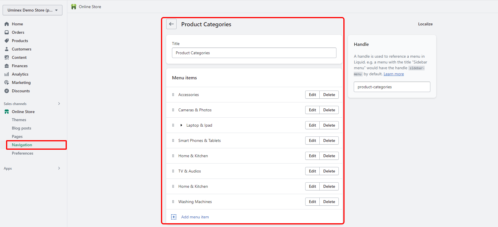 1. You create a menu Navigation => all menus